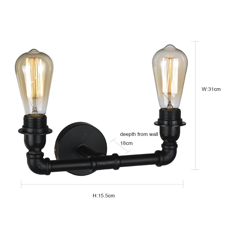 hotel LED Edison Filament Bulb Vintage Industrial Steampunk Iron Water Pipe Shape Wall Lamp Light