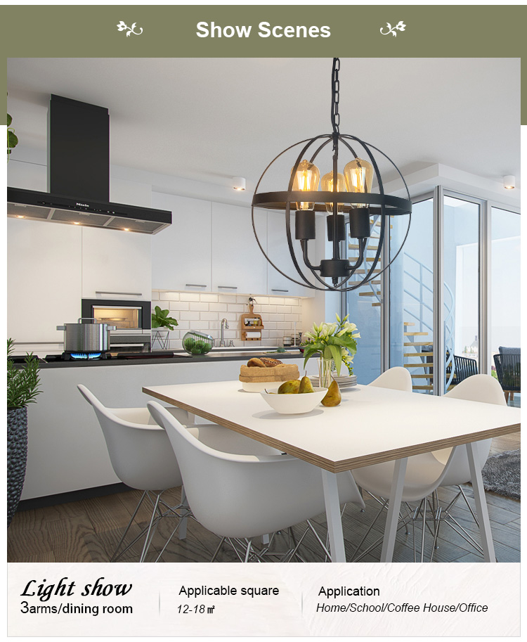 dalton matt black atom Sphere Black Cage industrial lighting pendant lamp vintage