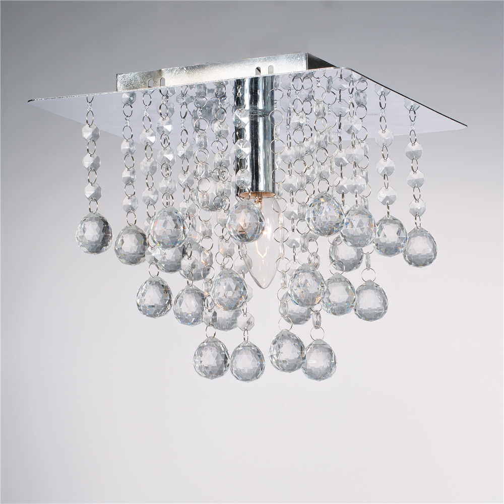 Square Modern Chrome Ceiling Lights Flush Fitting Crystal Droplet Chandelier