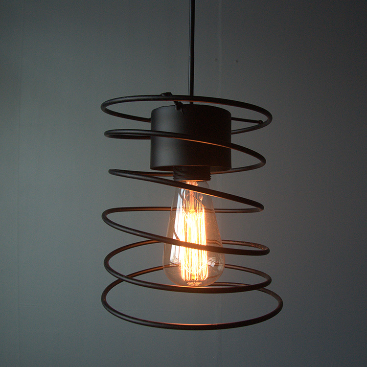 factory wholesale Vintage Ceiling Lamp Hanging Light Industrial Antique Black Metal Spiral Shade Cage Pendant Light