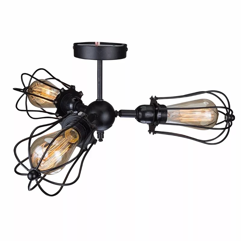 This 3-light semi flush mount ceiling light is a fresh new lighting design that unites industrial loft style with the integrity and quality of exquisite craftsmanship. Featuring five wire cages to house vintage Edison bulbs, it takes a modern spin on a vintage element and adds chic style. The modest black finish completes the look and enhances the industrial vibe. A perfect statement piece to your foyer, entryway, home office and more.