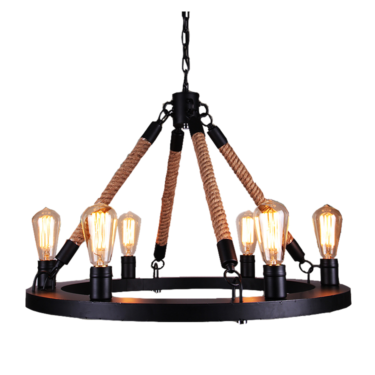 Vintage Industrial Lighting Retro Hemp Rope 6 Lights Vintage Wrought Iron Loft Restaurant pendant Light